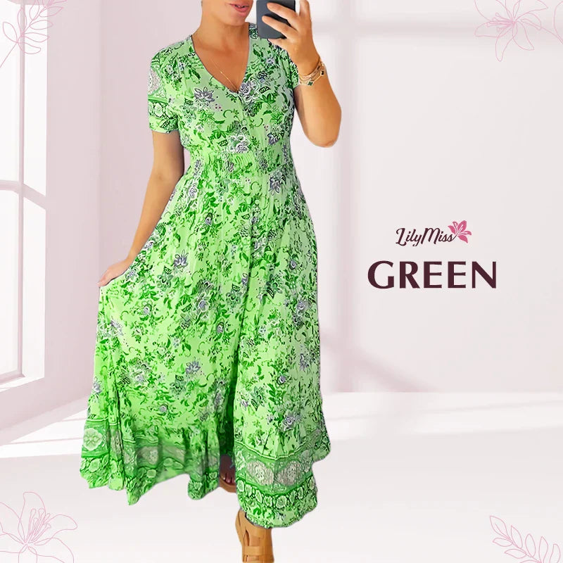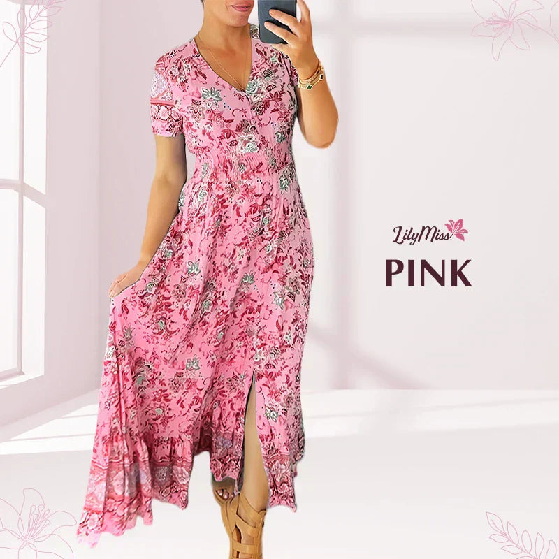 L'abito LilyMiss offre infinite opzioni di stile con il set full-color FemiBloom. Abbinalo alle tue borse preferite, alle pantofole in pelle, ai sandali con cinturini e agli accessori dorati per completare il tuo look, che tu stia optando per uno stile boho-chic, elegante o casual.