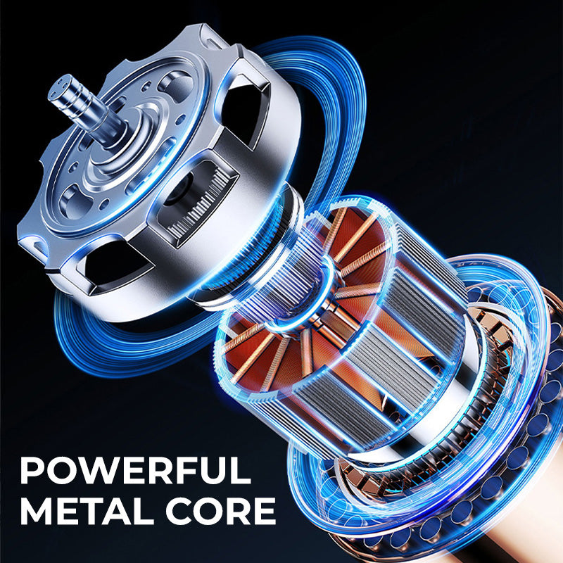 POTENTE NUCLEO IN METALLO E SISTEMA DI RAFFREDDAMENTO: Realizzato con un nucleo motore in metallo resistente per un funzionamento fluido e senza inceppamenti, e dotato di lame di raffreddamento per evitare il surriscaldamento anche durante lunghe sessioni.