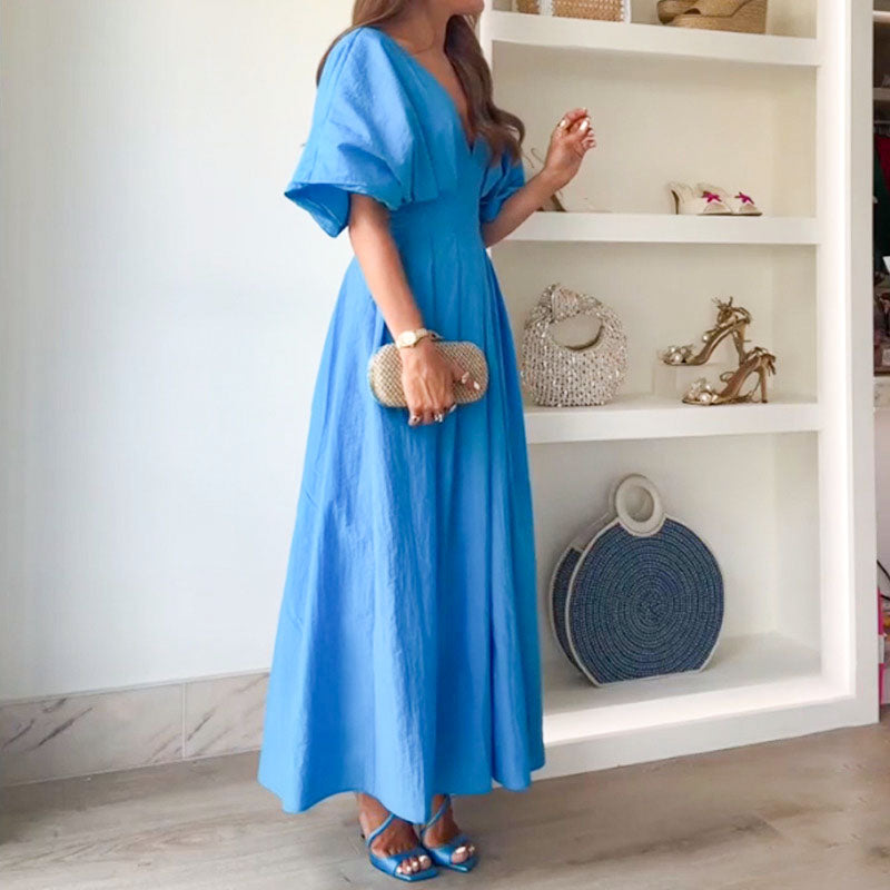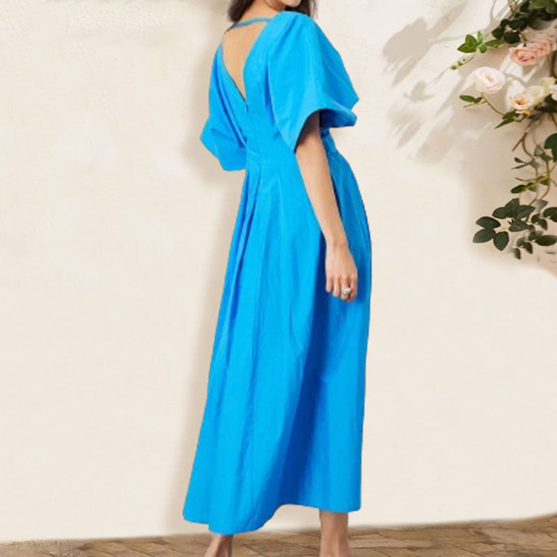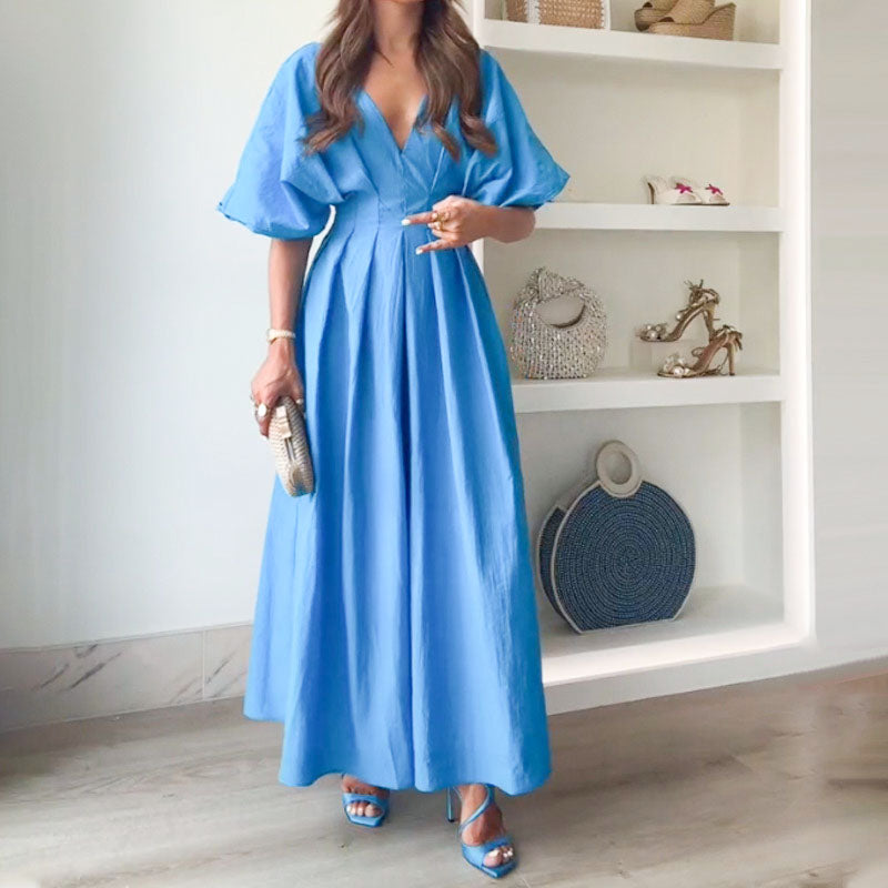 🌸🌸Abito lungo con scollo a V, plissettato e senza schienale🌸