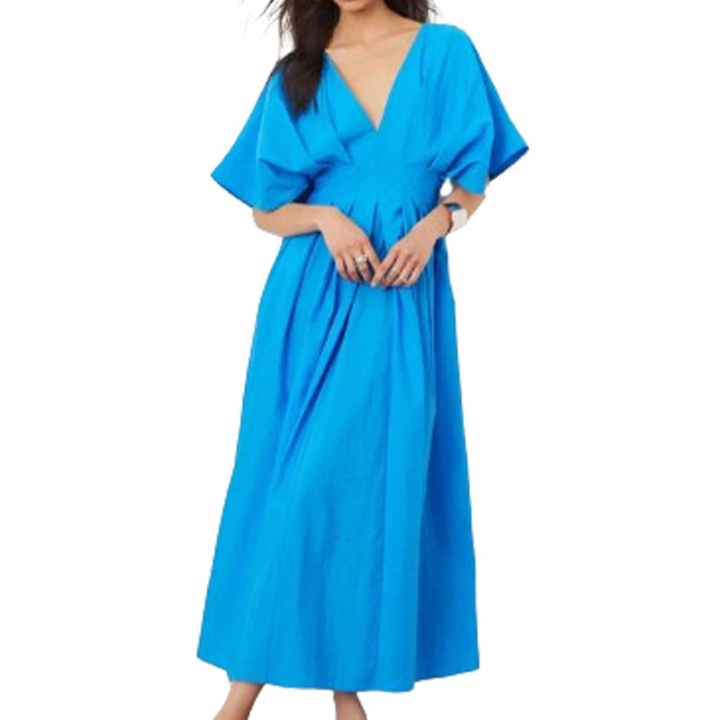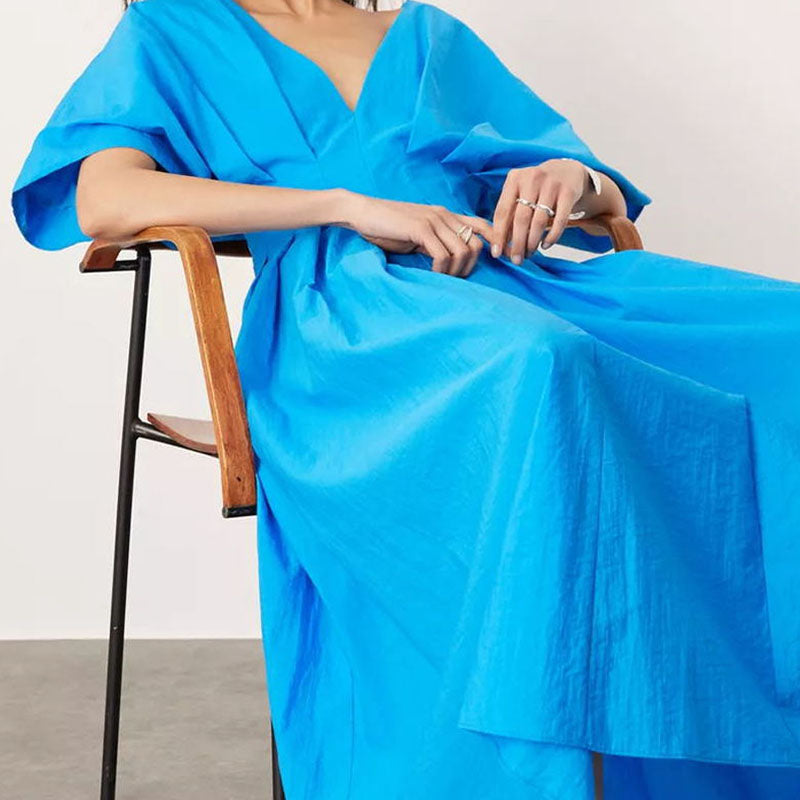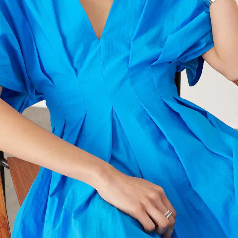 DESIGN PLEATO: caratterizzato da eleganti pieghe, questo abito offre un aspetto strutturato che ne esalta l'eleganza complessiva. Le pieghe non solo aggiungono interesse visivo, ma creano anche una silhouette lusinghiera che si adatta a diverse forme del corpo.