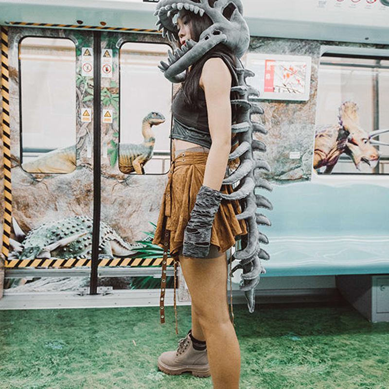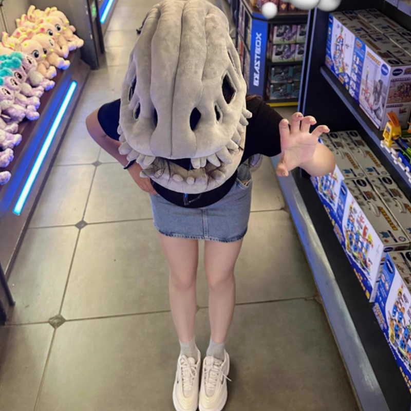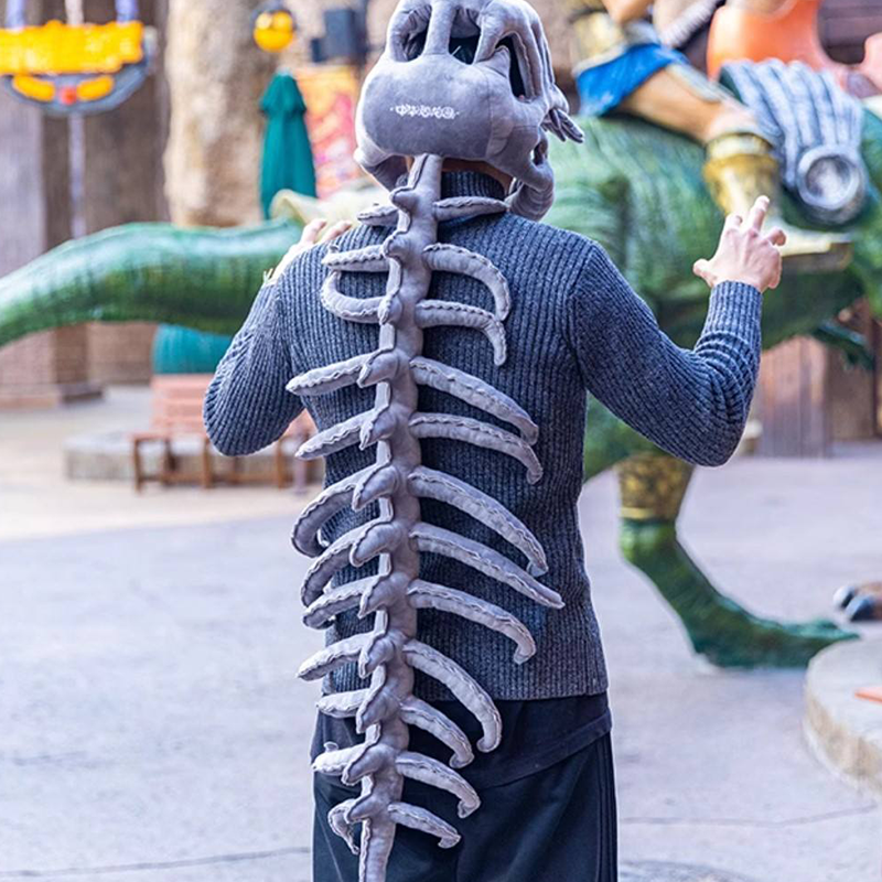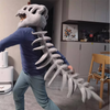 DESIGN DIVERTENTE DI SCHELETRO DI DINOSAURO: Ispirato agli scheletri preistorici ma con un tocco giocoso, questo costume in peluche regala subito allegria e un fascino fantasioso, adatto sia ai bambini che agli adulti. Chi lo indossa si trasforma in un buffo dinosauro, portando gioia e risate a feste o durante i giochi in casa.