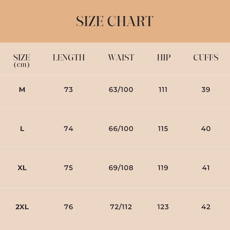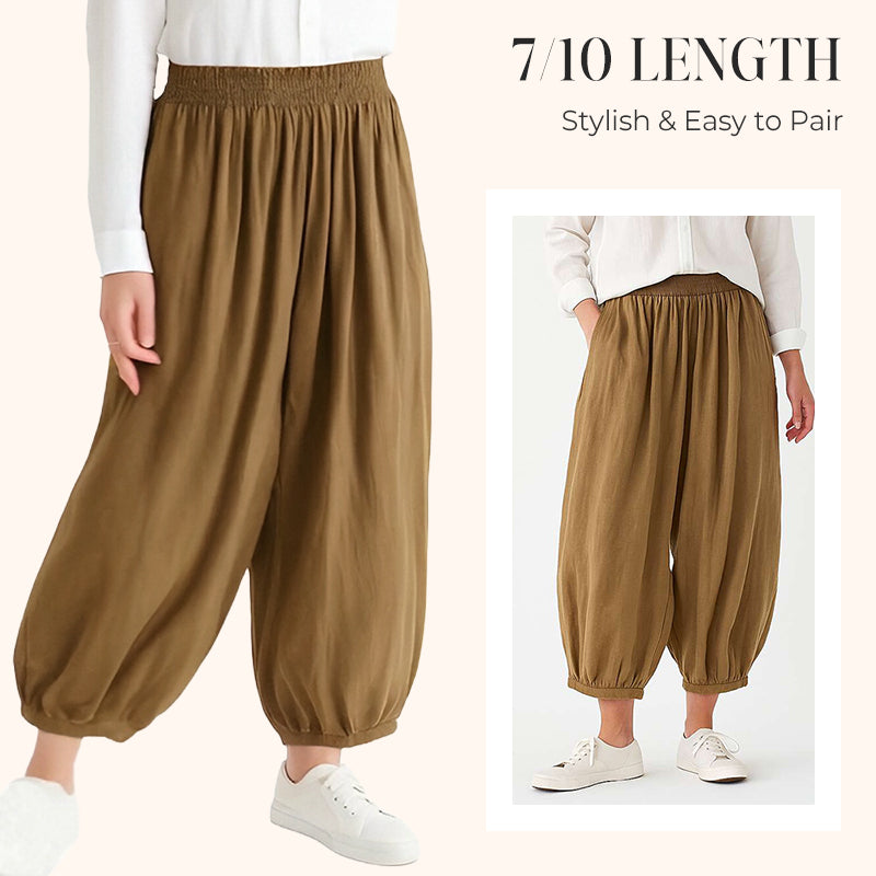 LUNGHEZZA 7/10 – Con una lunghezza che termina poco sopra le caviglie, questi pantaloni sono ideali per le mezze stagioni. Si abbinano facilmente con diversi tipi di calzature—sandali in estate o sneakers in primavera. Il taglio corto evita che il tessuto si accumuli sulle caviglie, favorendo una migliore traspirazione e mantenendo comunque un'adeguata copertura.