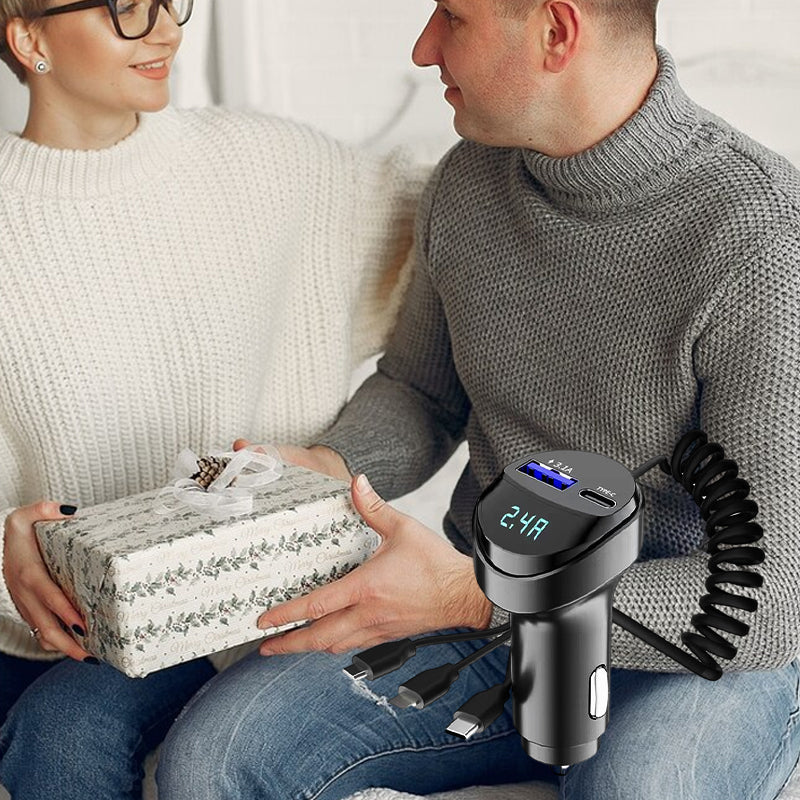 Caricabatterie da Auto a Ricarica Rapida con Cavo di Ricarica 3 in 1