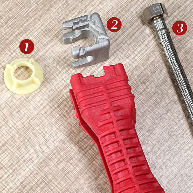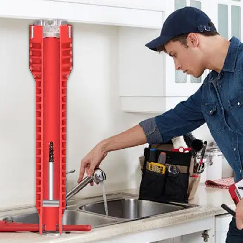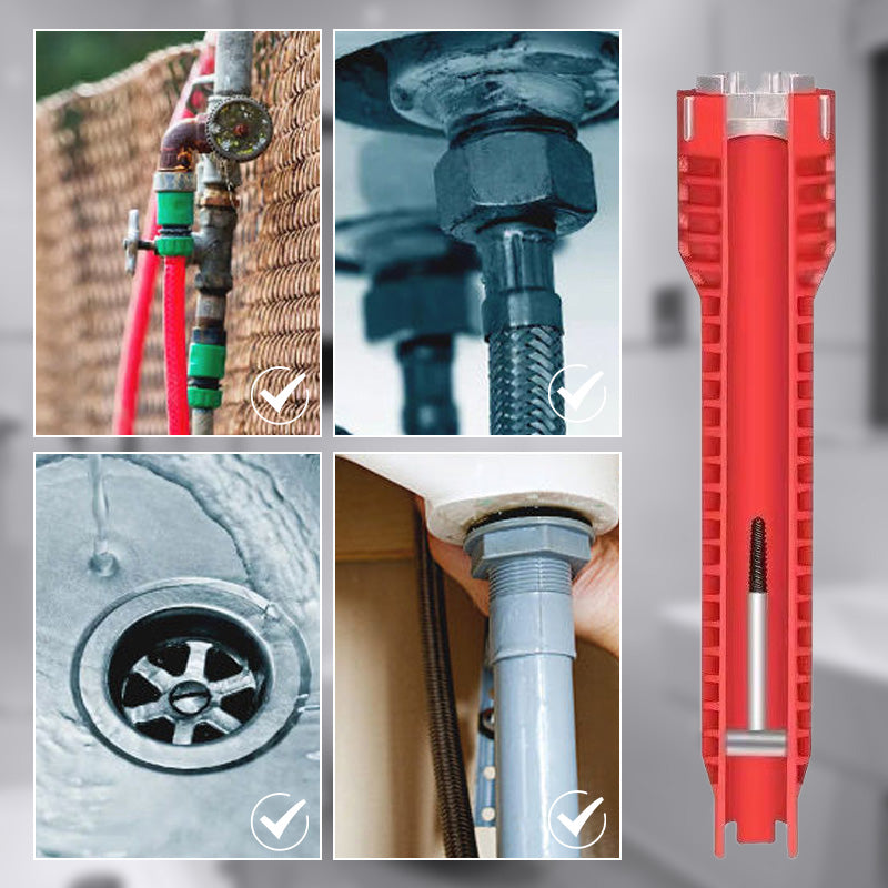 CHIAVE MULTIFUNZIONALE PER LAVELLO: Una pratica chiave progettata per lavorare in spazi ristretti, ideale per installare e rimuovere rapidamente scaldabagni, rubinetti e collegamenti del lavello.