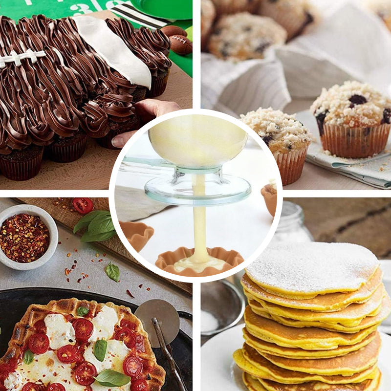 EROGAZIONE EFFICIENTE DELLA PASTELLA – Questo dosatore manuale permette di versare la pastella in modo preciso e senza sprechi. Basta premere la maniglia per rilasciare la quantità desiderata direttamente sulla superficie di cottura o negli stampi.