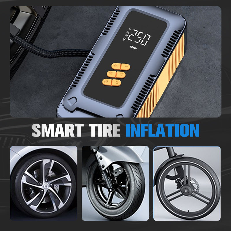 GONFIAGGIO AUTOMATICO CON PRESET: Imposta la pressione desiderata e il compressore si occupa del resto. Con una portata di 50L/minuto, gonfia rapidamente gli pneumatici e si arresta automaticamente al raggiungimento della pressione impostata. Perfetto per emergenze e manutenzione ordinaria.