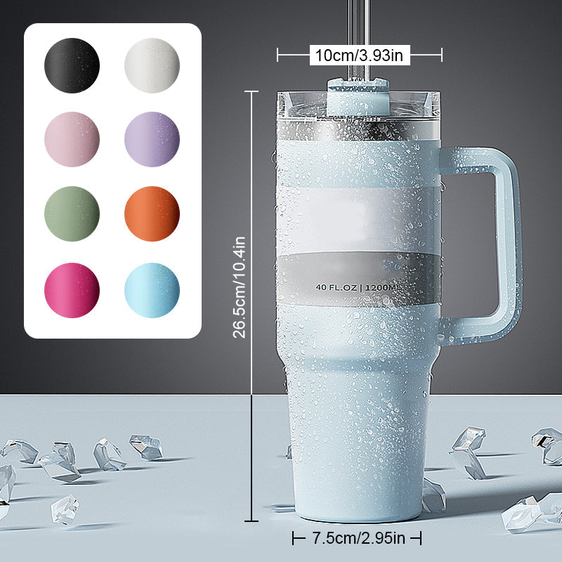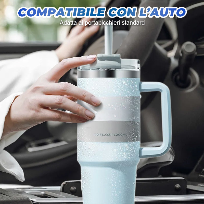 ALTA CAPACITÀ DA 1200ML CON PRESTAZIONI TERMICHE: Progettata con una capacità generosa di 1200 ml, questa tazza mantiene le bevande calde o fredde a lungo, perfetta per giornate di lavoro, viaggi in auto o allenamenti all'aperto.