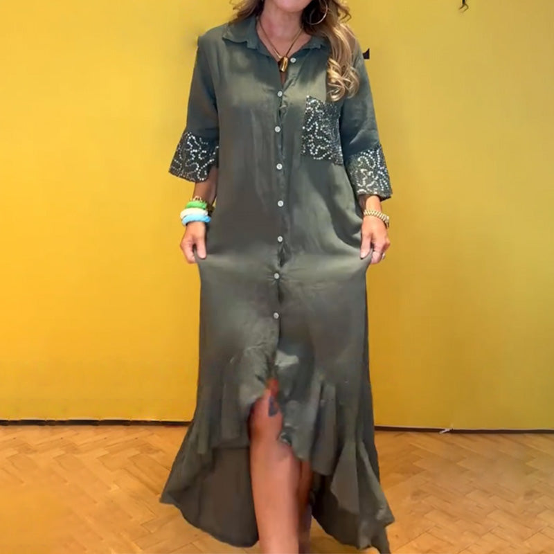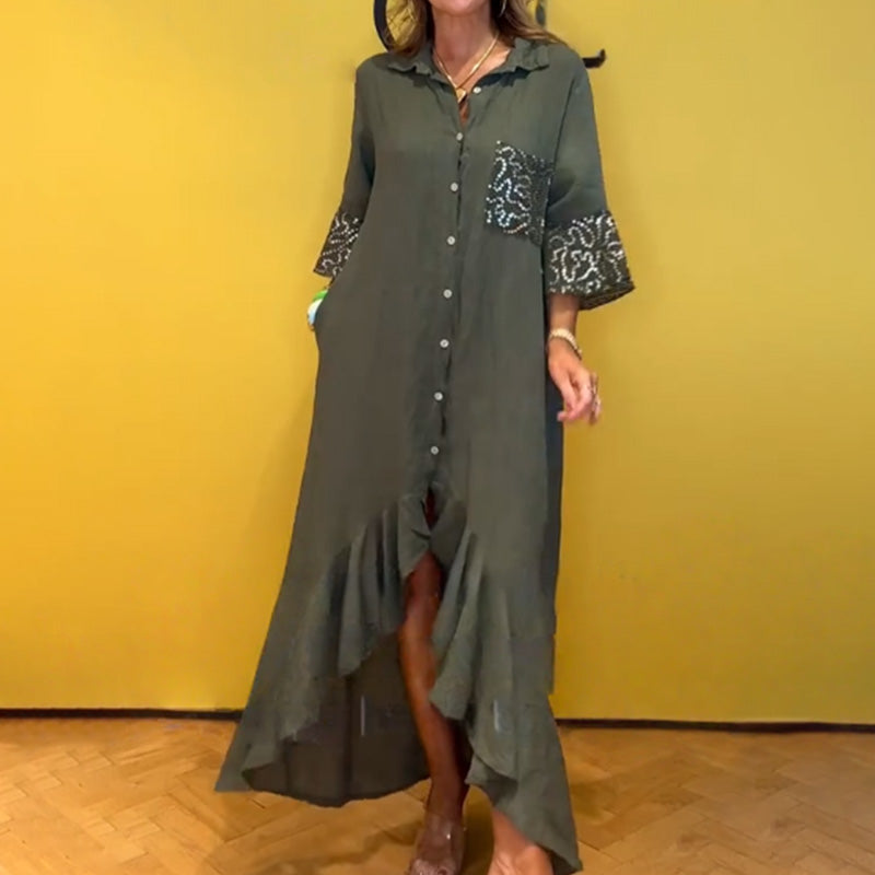 Abito Camicia da Donna con Bottoni e Orlo a Balze