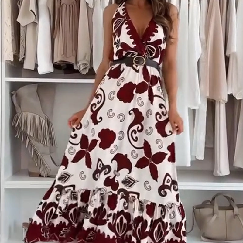 Contenuto della confezione: 1× Abito Lungo da Donna Senza Maniche con Scollo a V e Fantasia Floreale